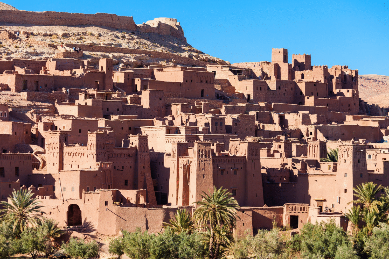 Por la mañana, partimos hacia el Valle de las Rosas y continuamos nuestro viaje hacia Ouarzazate. En el camino, haremos una parada en el Oasis de Skoura y visitaremos la famosa Kasbah Taourirt, uno de los sitios mas iconicos del sur de Marruecos. Tambien tendra la opcion de visitar los estudios de cine de Ouarzazate, conocidos como “Hollywood de Marruecos”. Noche en un Riad/Hotel local.