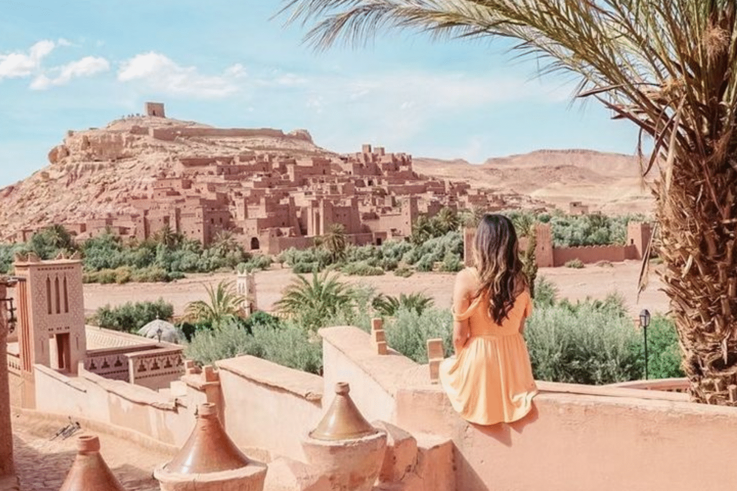 Este tour de 6 dias desde Marrakech te llevara a conocer los encantos de Marrakech, las kasbahs de la UNESCO en Ouarzazate, los oasis de palmeras y una noche inolvidable en el desierto del Sahara bajo las estrellas. Paseo en camello, el aroma de la flor de azahar y el caleidoscopio de alfombras, bufandas y cuero en las curtidurias de Fez. Las montanas del Atlas, con sus diminutos pueblos, y las grandes dunas del desierto del Sahara, te sorprenderan.